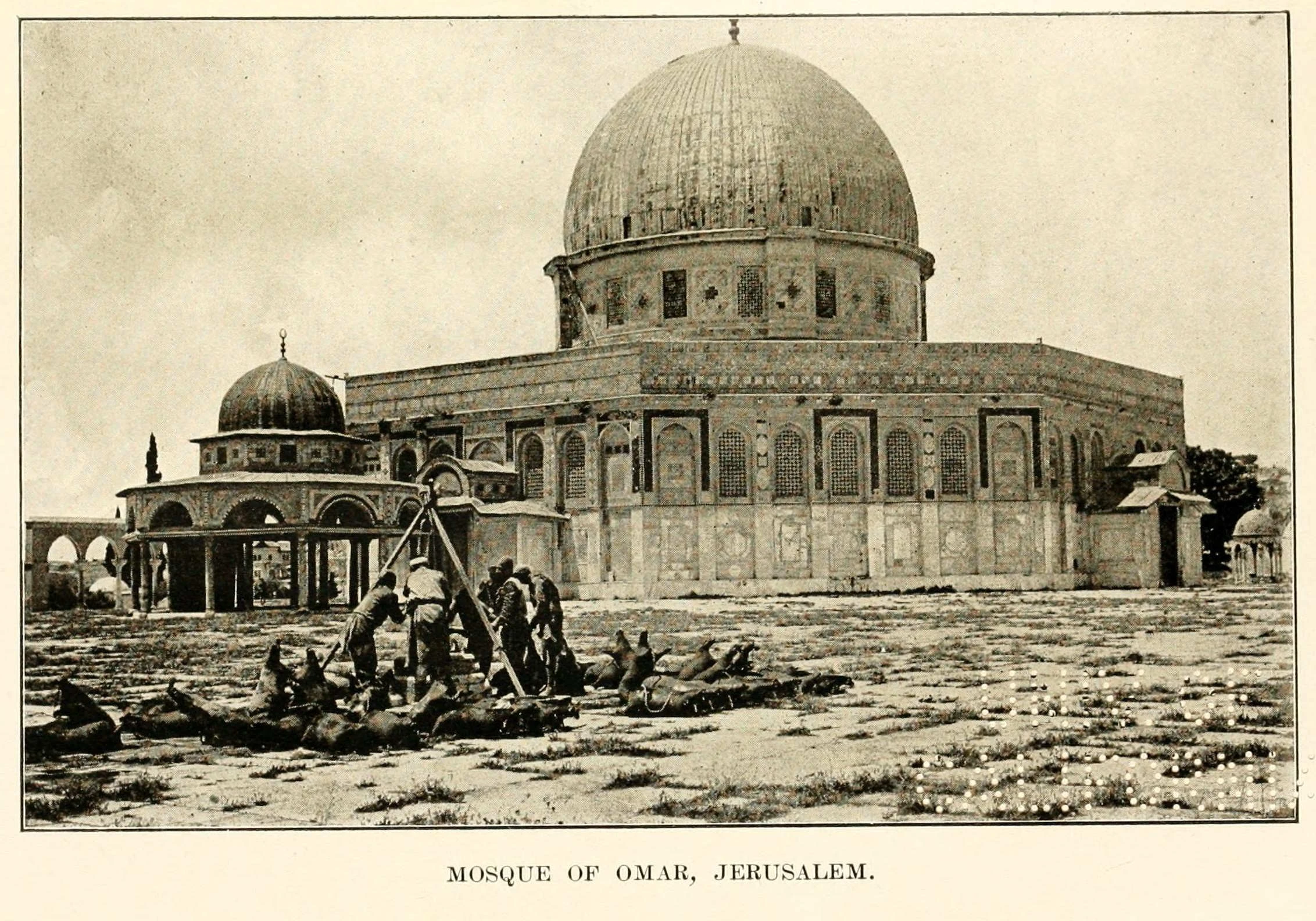 The Mosque of Omar is located opposite the Church of the Holy Sepulchre, on the north side of the square in front of the main entrance to the temple.
